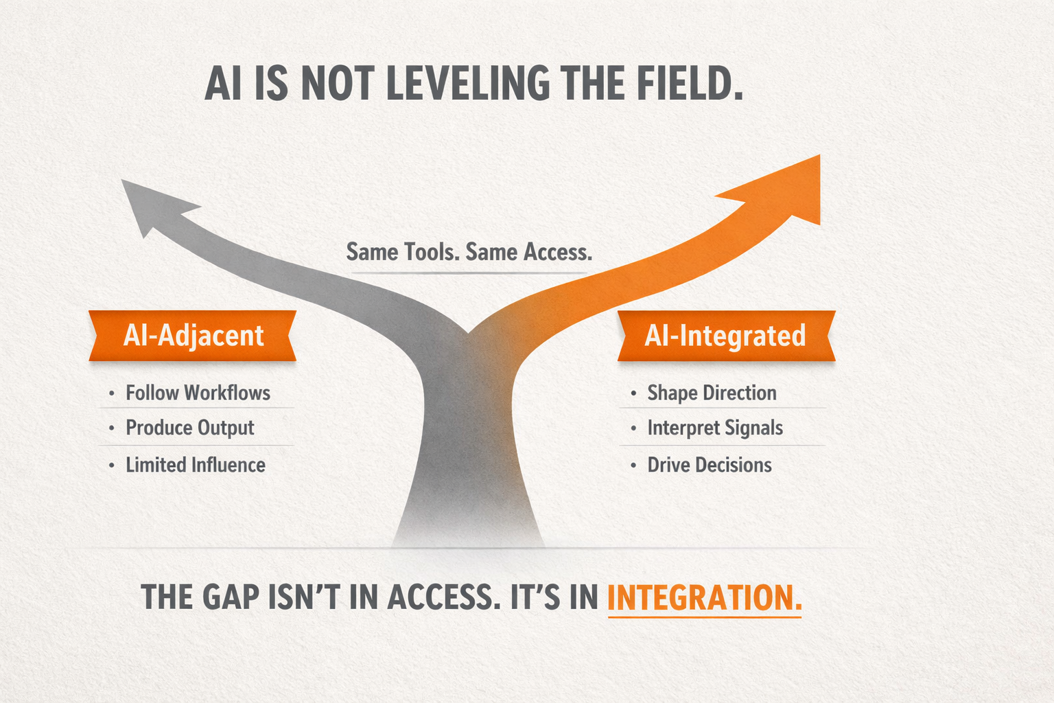 The organizations that benefit from AI will not simply be the ones that use it the most. They will be the ones that integrate it into how they think, align it with how they decide, and recognize—early—where the real gap is forming.